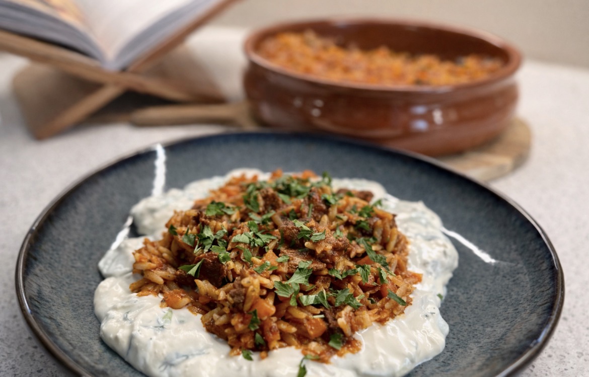 Gresk giouvetsi med orzo og storfekjøtt er en klassisk ovnsbakt rett fra det greske kjøkken. Mørt storfekjøtt småkokes i tomatsaus med urter før risoni (orzo) blandes inn og bakes ferdig i ovnen. Resultatet er en fyldig og smakfull middagsrett som passer like godt til helg som til hverdags.