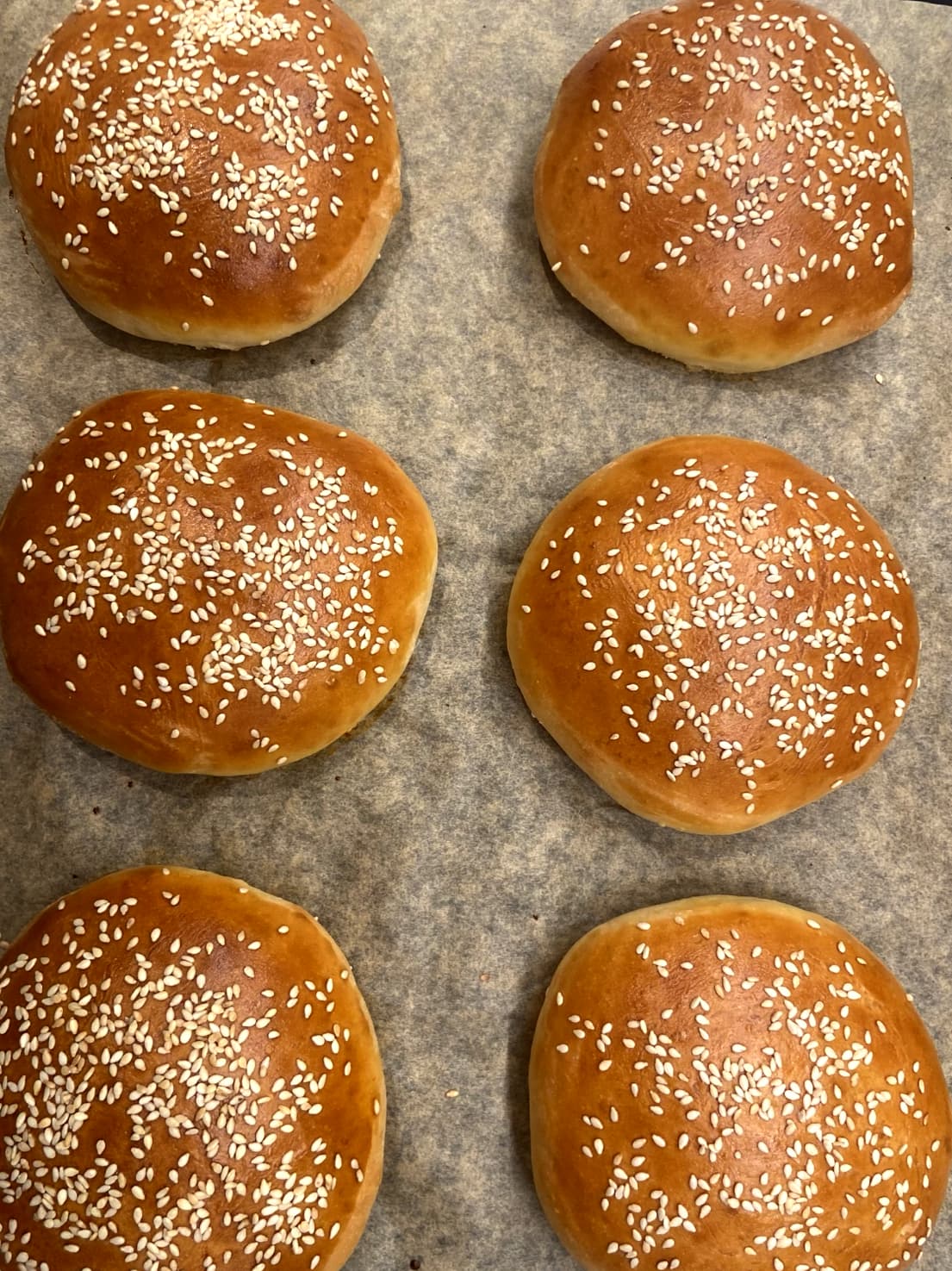 Stek hamburgerbrødene midt i ovnen på 220°C i cirka 13–15 minutter, eller til de er gyllenbrune og gjennomstekte.