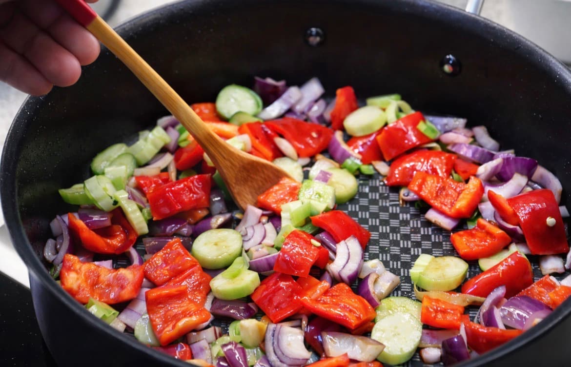 Grønnsakene skal bli gjennomvarme, men fortsatt holde seg litt sprø og ha god tekstur.