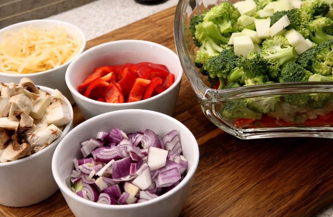 1. Forbered alle grønnsakene ved å kutte dem i jevne biter før du starter stekingen.