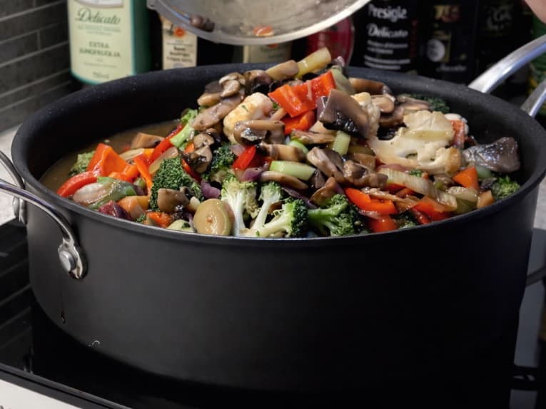 Stek hver omgang i ca. 2 minutter. Grønnsakene skal fortsatt være faste og ha litt tyggemotstand, ikke bli for myke.