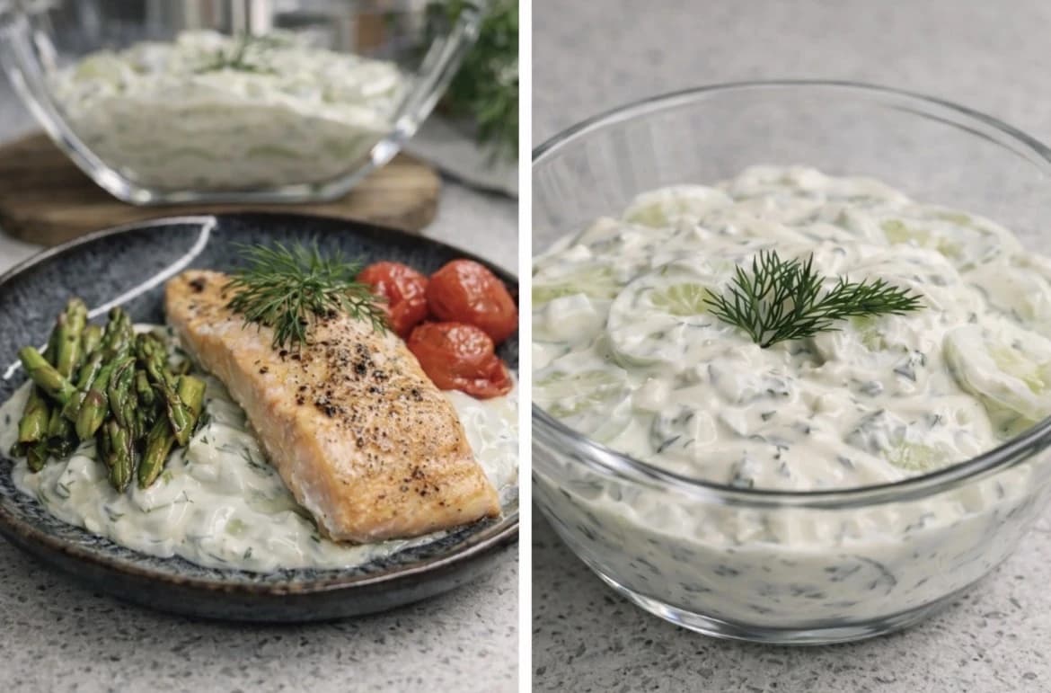 En frisk og kremet agurksalat med dill, hvitløk og gresk yoghurt. Denne enkle oppskriften passer perfekt som tilbehør til laks, grillmat og kylling. Den tar bare noen minutter å lage og gir en balansert og fyldig smak.