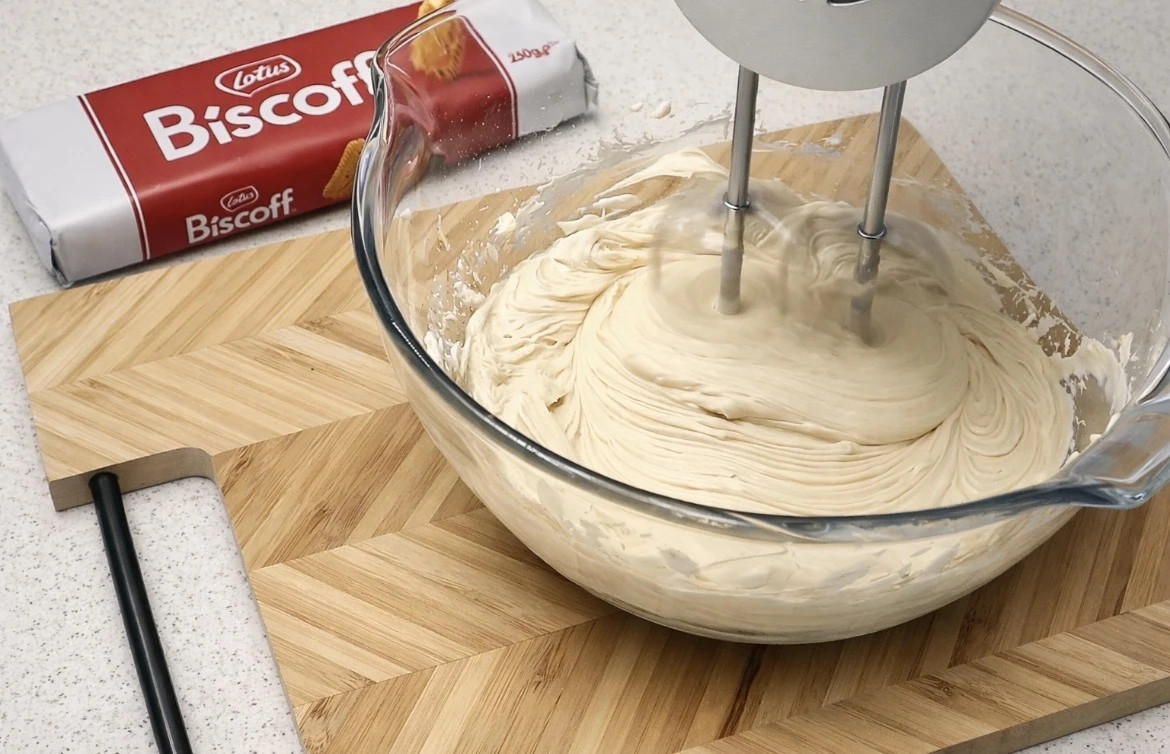 Den balanserer sødme og tekstur på en harmonisk måte: sprø bunn, luftig og fløyelsmyk krem og en glatt Lotus-topp som smelter i munnen.