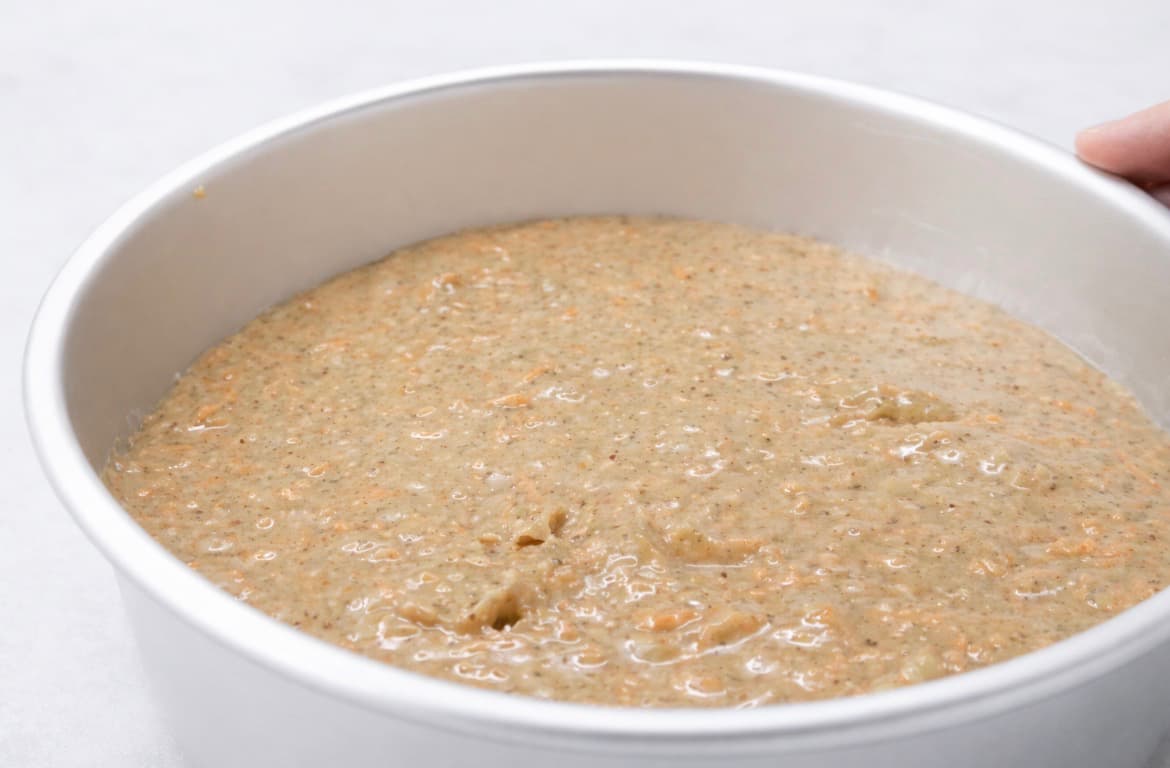 5. Fordel røren i to former kledd med bakepapir (ca. 22 cm).