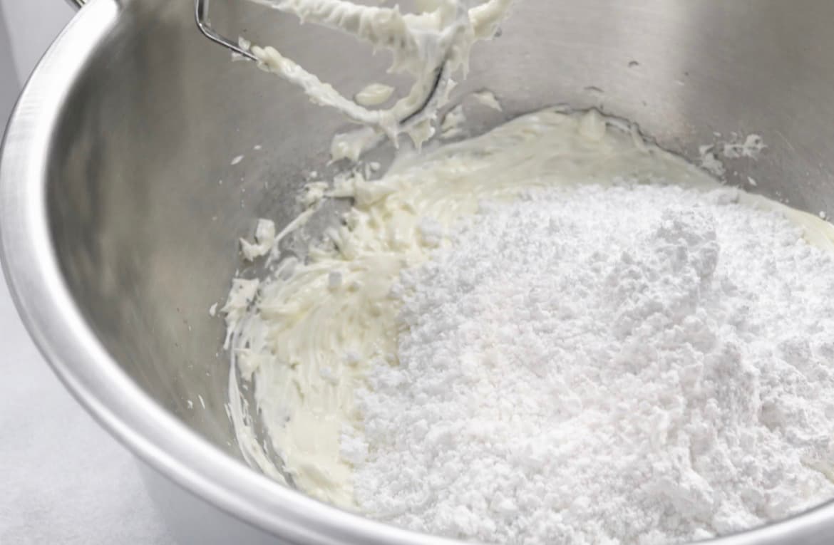 - Pisk kremost og smør til en myk krem.