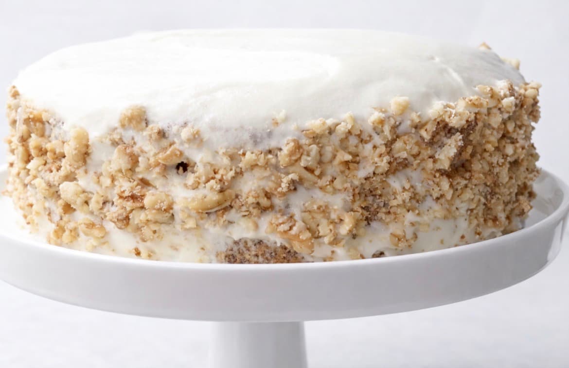 Pynt gjerne sidene med hakkede valnøtter for ekstra smak og et fint utseende.