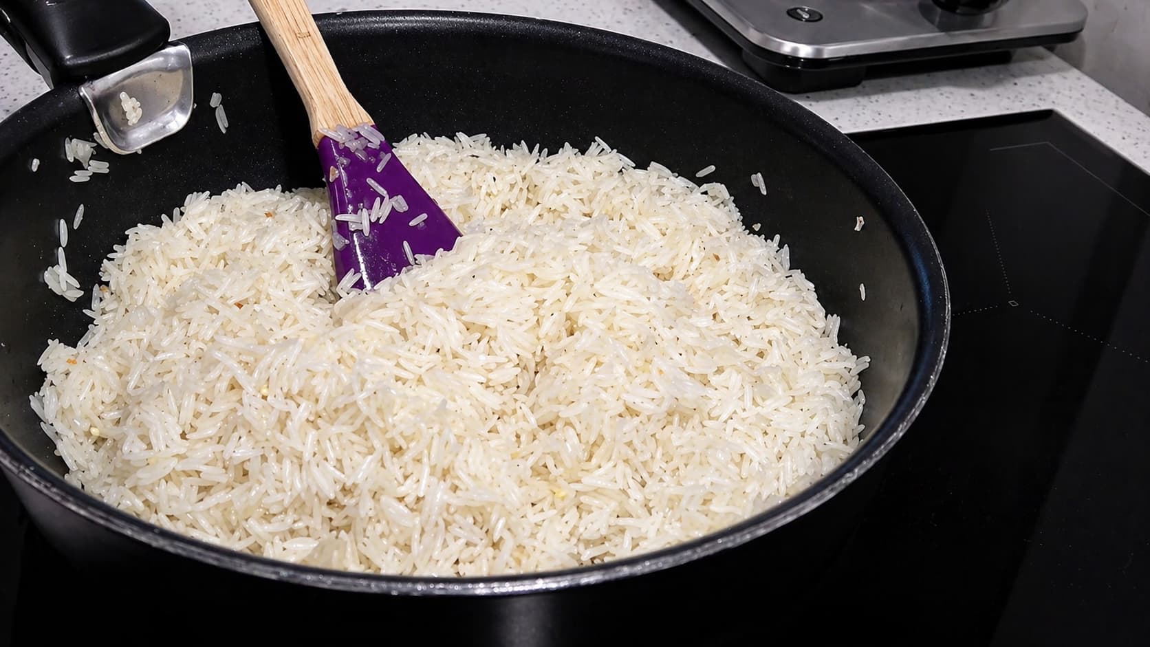Du kan justere mengden væske etter behov. Hvis risen virker tørr under steking, kan du tilsette litt mer vann.