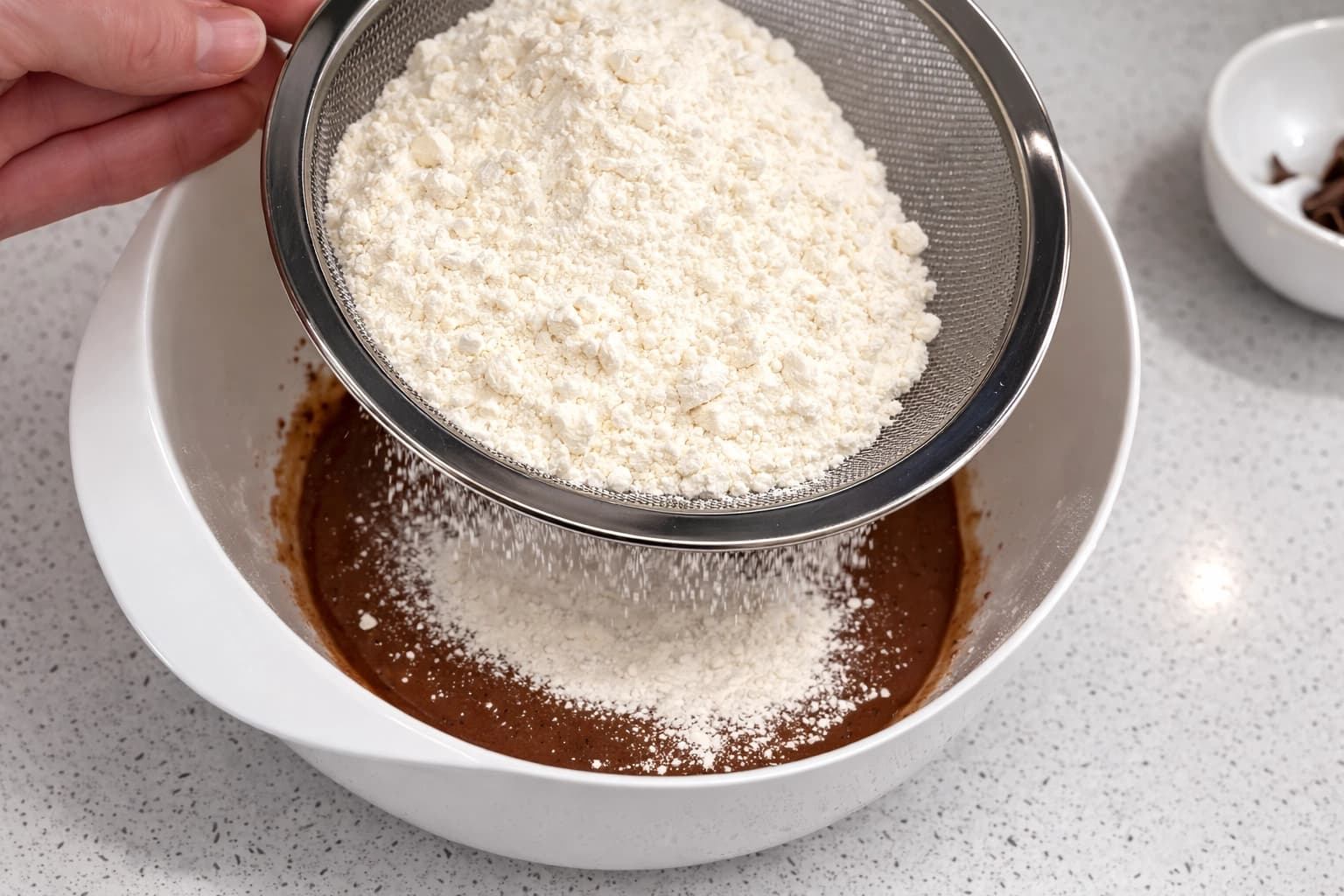 Bland inn sterk kaffe eller espresso, rør sammen og ta kjelen av varmen. La blandingen avkjøles litt før den tilsettes i røren.